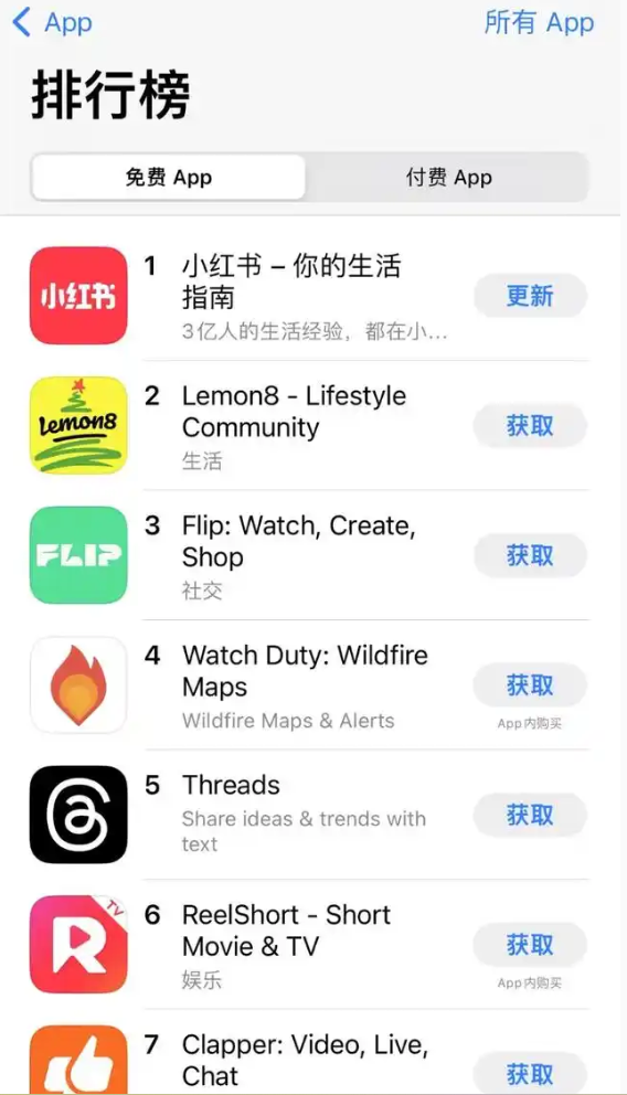 原来,面对TikTok可能在本周遭禁的局面,一些美国网民没有选择Facebook(脸书)、Instagram(照片墙)等美国本土社交媒体平台,而是转投“小红书”这一中国社交平台并被迅速“种草”。大批“TikTok难民”的蜂拥而至,使得“小红书”一度登顶苹果美区应用商店免费榜的首位。